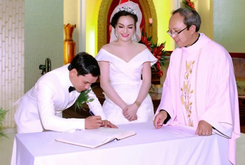 Trong lễ cưới, trước khi nói lên lời ưng thuận, đôi bạn sắp kết hôn được linh mục hỏi công khai trước mặt những người chứng và cộng đồng về sự tự do, tự nguyện kết hôn. “AnhT… và chị T…, anh chị đến đây để kết hôn với nhau, anh chị có bị ép buộc không?”, và “Anh chị có hoàn toàn tự ý và tự do không?”, “Khi chọn đời sống hôn nhân, anh chị có sẵn sàng yêu thương và tôn trọng nhau suốt đời không?”, “Anh chị có sẵn sàng yêu thương và đón nhận con cái Chúa sẽ ban, và giáo dục chúng theo luật Đức Kitô và Hội Thánh không?”. Cô dâu và chú rễ trả lời đơn sơ nhưng rất ý nghĩa: “thưa có”. Và như thế, họ đã xác nhận ưng thuận và sẵn sàng kết hôn với nhau. Công đồng Vatican II xác định hôn nhân như là một “cộng đồng thân mật của sự sống và tình yêu, được Đấng Tạo Hóa thiết lập và ban những qui luật riêng” (GS 48).