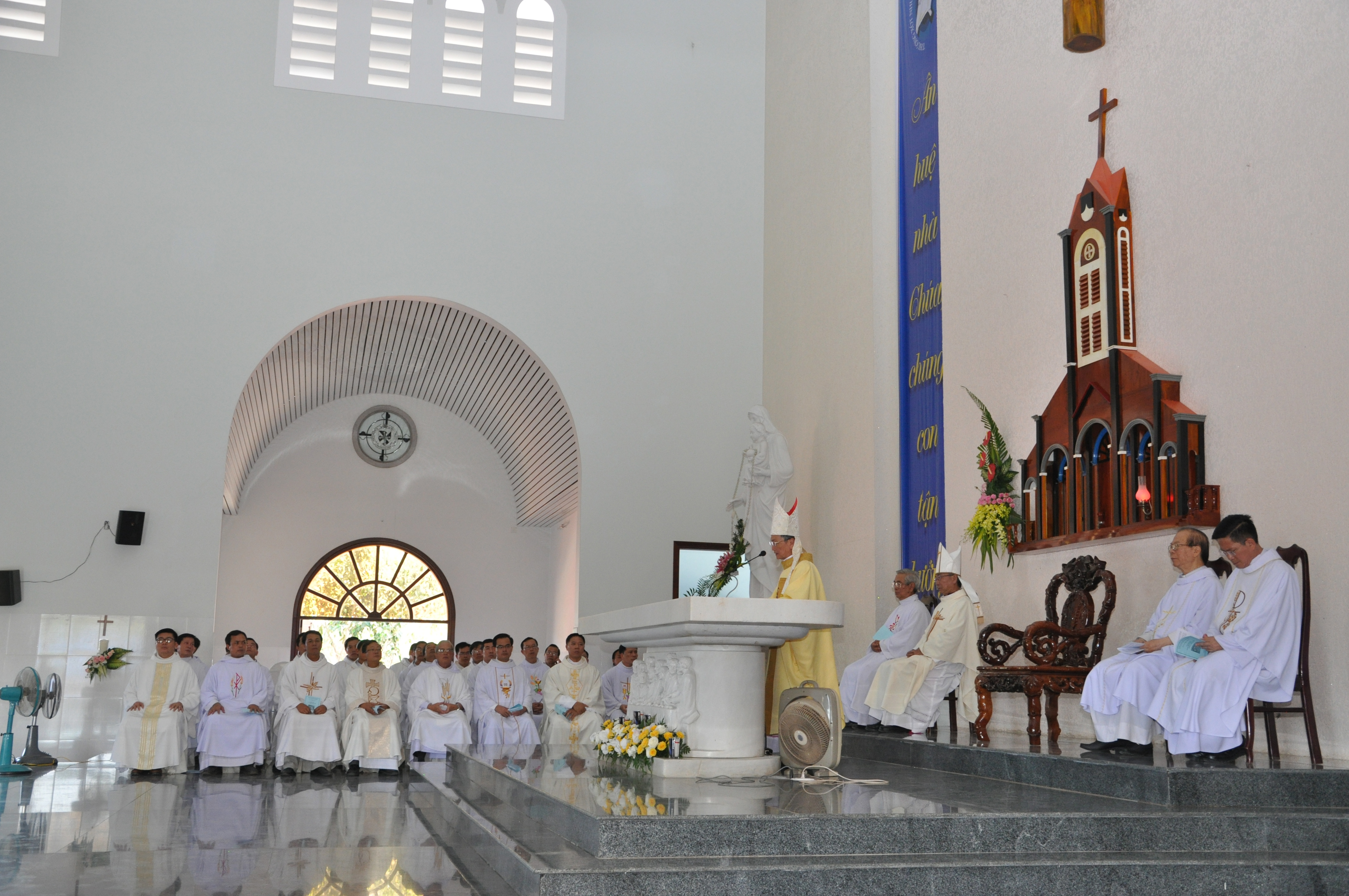 Đó là lời nhắn nhủ của Đức Cha Tôma, Giám mục Giáo phận Bà Rịa trong bài giảng lễ thánh lễ Cung hiến Thánh đường Giáo xứ Bông Trang, Giáo hạt Xuyên Mộc, ngày 01.5.2016. Cùng đồng tế với ngài có Đức Cha Emmanuel – Giám mục phó Giáo phận, Cha Giuse – Giám tỉnh Dòng Đa Minh Việt Nam, Cha Giuse – Hạt trưởng hạt Xuyên Mộc, Cha Vinhsơn – Hạt trưởng hạt Bà Rịa, quý Cha, quý Tu sĩ nam nữ, quý Ân nhân và cùng đông đảo cộng đoàn dân Chúa trong và ngoài giáo phận.