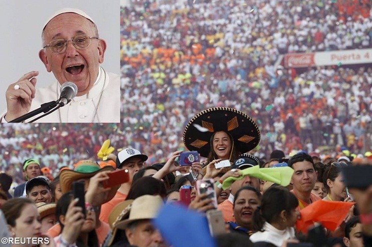 Đức Phanxicô gặp khoảng 50.000 người trẻ sau khi cử hành thánh lễ với các linh mục, tu sỹ nam nữ ở Sân vận động Venustiano Carranza, và viếng nhà thờ chính tòa.