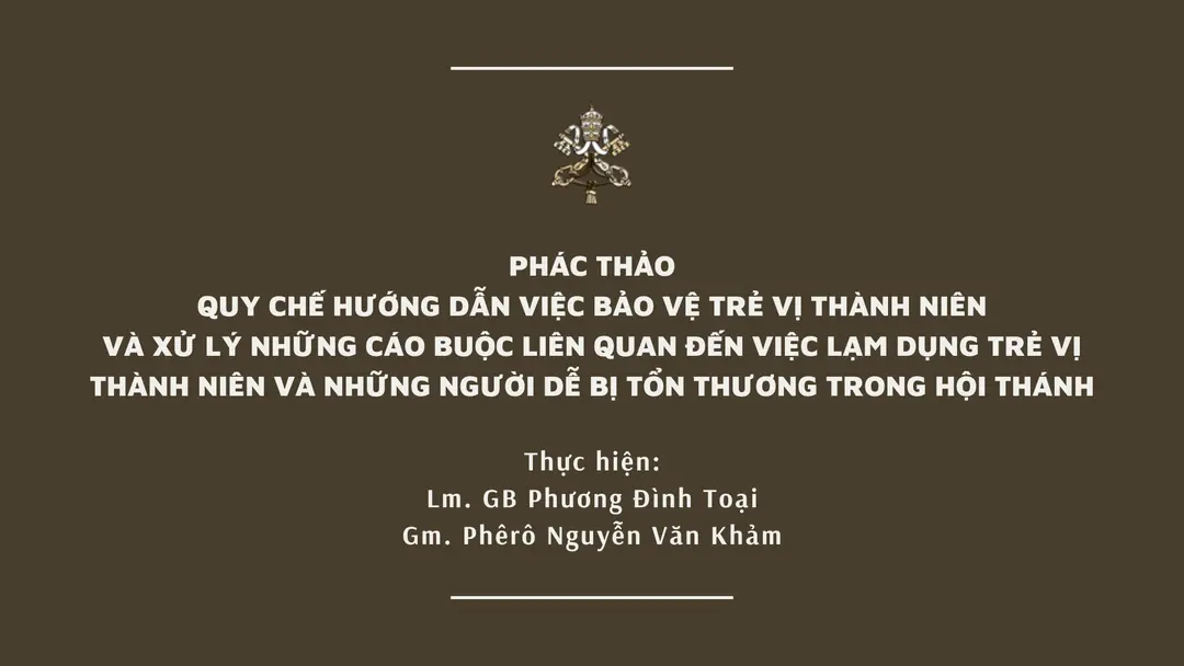 Ghi chú: Đây không phải là “dự thảo” nhưng chỉ là “phác thảo” dựa trên tài liệu chính thức của Tòa Thánh, để người đọc có thể hình dung Quy chế hướng dẫn mà các Hội Thánh địa phương có thể khai triển trong hoàn cảnh cụ thể của mình.