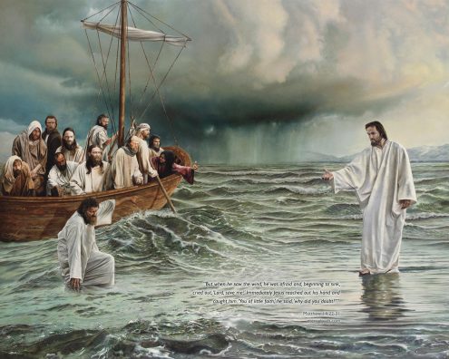 Tuy vậy, chỉ mới đi được nửa đường, thánh Phêrô đã sợ hãi và nghi ngờ nên chìm xuống giữa biển. Chúa đã giơ tay kéo ngài lên và khiển trách : “Người hèn tin, tại sao mà nghi ngờ”.