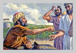 “Quả thế, về Nước Trời thì cũng như một gia chủ kia, ngay vừa tảng sáng, đã ra thuê thợ cho vườn nho của ông …”. Giữa một “chợ người” ít việc nhiều người, các ông chủ ra thuê thợ làm việc và trả công nhật. Chúa Giêsu đã quan sát và lấy hình ảnh cụ thể này ở Do thái để mạc khải mầu nhiệm Nước Trời. Người kể dụ ngôn ông chủ vườn nho với các thợ làm việc các giờ khác nhau trong ngày. Tiền công nhật là 1 đồng, giá thỏa thuận đôi bên.Gia chủ thuê thợ làm vườn nho vào các giờ giấc khác nhau. Ở Do thái một ngày bắt đầu từ lúc 6 giờ chiều : – 3 giờ là 9 giờ sáng – 6 giờ là 12 giờ trưa – 9 giờ là 3 giờ chiều – 11 giờ là 5 giờ chiều