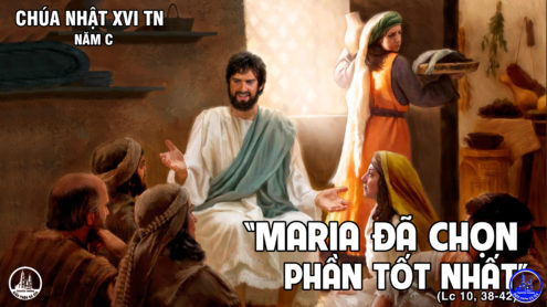 Khi ấy, Chúa Giêsu vào một làng kia và có một phụ nữ tên là Martha rước Người vào nhà mình. Bà có người em gái tên là Maria ngồi bên chân Chúa mà nghe lời Người. Martha bận rộn với việc thết đãi khách. Bà đứng lại thưa Người rằng: “Lạy Thầy, em con để con hầu hạ một mình mà Thầy không quan tâm sao? Xin Thầy bảo em con giúp con với”. Nhưng Chúa đáp: “Martha, Martha, con lo lắng bối rối về nhiều chuyện. Chỉ có một sự cần mà thôi: Maria đã chọn phần tốt nhất và sẽ không bị ai lấy mất”.