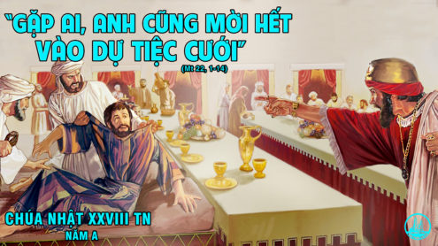 Những người được mời đã không đáng được tham dự tiệc cưới, vì họ đã coi thường đức vua của họ. Chúng ta biết lời mời cao hơn mâm cỗ. Vua đã đích thân gởi thiệp mời đến dự tiệc cưới. Thiên Chúa yêu thương mời gọi mỗi người chúng ta đến dự tiệc cưới Nước Trời. Tiệc cưới này được chuẩn bị ngay trên trần thế. Đây là bữa tiệc Thánh Thể được cử hành mỗi ngày nơi các giáo xứ. Nơi đây chúng ta sẽ được nuôi dưỡng bằng Lời và Mình Máu Thánh Chúa. Bánh trường sinh nuôi dưỡng linh hồn và dẫn bước chúng ta vào tiệc vui Nước Trời mai sau. Chúng ta hãy mau mắn đáp lời mời gọi của Chúa. Hãy ăn mặc tươm tất, chuẩn bị chu đáo và dành thời gian quí để cùng chia sẻ niềm vui chung với cộng đoàn dân Chúa.