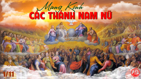 Hiệp thông với toàn thể Giáo Hội, hôm nay chúng ta cử hành trọng thể Thánh Lễ tôn kính các Thánh Nam Nữ, các thánh đã được Giáo Hội tôn phong và tất cả những người đang được phúc chia sẻ sự sống viên mãn của Thiên Chúa, cùng với Đức Ki-tô, trong đó, chắc chắn có ông bà tổ tiên và những người thân yêu của chúng ta trong đức tin, trong gia đình và trong đời sống dâng hiến. Bởi vì sách Khải Huyền nói về các thánh là: