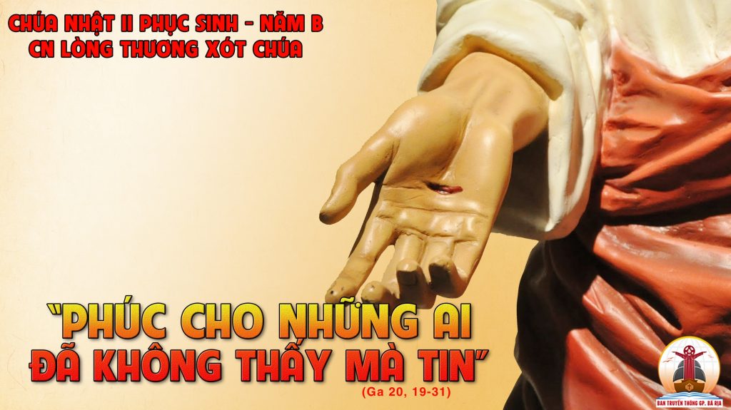 Trong Tin Mừng hôm nay, Đức Giê-su Phục Sinh hiện ra cho các Tông Đồ, đặc biệt là thánh Tô-ma, qua người môn đệ cứng lòng tin nầy, Ngài nhắn gởi đến tất cả chúng ta: “Phúc thay những người không thấy mà tin”.