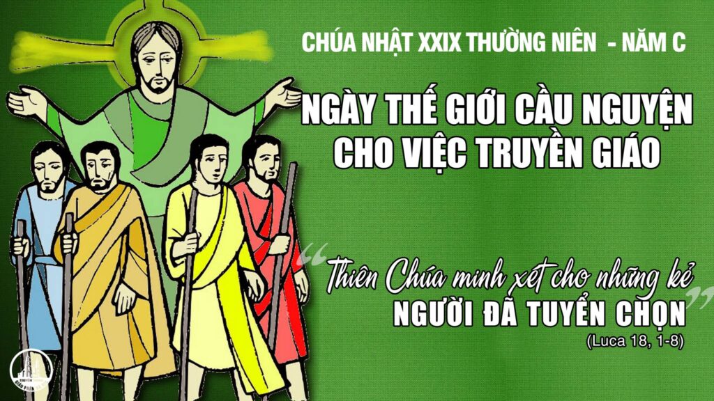 Từ 82 năm nay, ngày Chúa Nhật giữa tháng 10 dương lịch được chọn làm Ngày thế giới truyền giáo. Nhân dịp này, Đức Giáo Hoàng thường công bố một sứ điệp kêu gọi cộng đoàn Công giáo thế giới hãy suy tư và hành động để tham gia sứ mạng truyền giáo của Giáo Hội. Sứ điệp nhân ngày truyền giáo năm 2008 mang chủ đề: “Được mời gọi để trở thành những môn đệ và tông đồ của Đức Giêsu Kitô”. Đức Thánh Cha Bê-nê-đi-tô đã nêu rõ tính cách thánh thiêng của sứ mạng truyền giáo, vì đây “là một ân sủng, một ơn gọi xứng hợp và căn tính sâu xa nhất của Giáo Hội” (trích Tông Huấn Loan báo Tin Mừng số 14). Truyền giáo chính là lệnh truyền của Đấng Cứu Thế với các môn đệ trước khi Người về trời. Công cuộc truyền giáo càng trở nên cấp bách hơn nữa trong thời đại hôm nay, khi con người càng ngày càng tỏ ra dửng dưng đối với tôn giáo và những giá trị tâm linh.