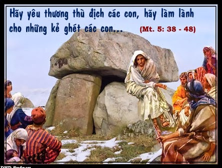 Khi ấy, Chúa phán cùng các môn đệ rằng: “Các con đã nghe dạy: Ngươi hãy yêu thân nhân, và hãy thù ghét địch thù. Còn Ta, Ta bảo các con: Hãy yêu thương thù địch và làm ơn cho những kẻ ghét các con; hãy cầu nguyện cho những ai bắt bớ và nguyền rủa các con, để như vậy các con nên con cái của Cha các con, Đấng ngự trên trời: Người khiến mặt trời mọc lên cho người lành kẻ dữ, và cho mưa xuống trên người liêm khiết và kẻ bất lương. Vì nếu các con yêu thương những ai mến trọng các con, thì các con được công phúc gì? Các người thu thuế không làm như thế ư? Nếu các con chỉ chào hỏi anh em mình thôi, thì các con đâu có làm chi hơn? Những người ngoại giáo không làm thế ư? Vậy các con hãy nên hoàn hảo như Cha các con trên trời là Đấng hoàn hảo”.