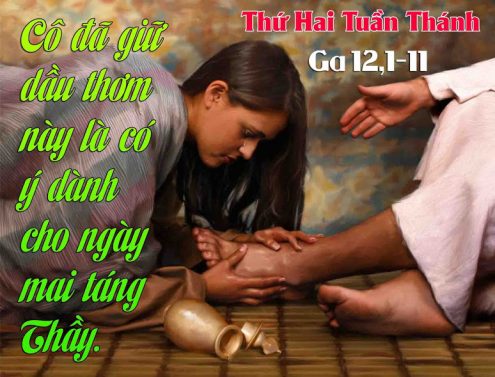 1 Sáu ngày trước lễ Vượt Qua, Đức Giê-su đến làng Bê-ta-ni-a, nơi anh La-da-rô ở. Anh này đã được Người cho sống lại từ cõi chết.2 Ở đó, người ta dọn bữa ăn tối thết đãi Đức Giê-su; cô Mác-ta lo hầu bàn, còn anh La-da-rô là một trong những kẻ cùng dự tiệc với Người.3 Cô Ma-ri-a lấy một cân dầu thơm cam tùng nguyên chất và quý giá xức chân Đức Giê-su, rồi lấy tóc mà lau. Cả nhà sực mùi thơm.4 Một trong các môn đệ của Đức Giê-su là Giu-đa Ít-ca-ri-ốt, kẻ sẽ nộp Người, liền nói:5 “Sao lại không bán dầu thơm đó lấy ba trăm quan tiền mà cho người nghèo? “6 Y nói thế, không phải vì lo cho người nghèo, nhưng vì y là một tên ăn cắp: y giữ túi tiền và thường lấy cho mình những gì người ta bỏ vào quỹ chung.7 Đức Giê-su nói: “Hãy để cô ấy yên. Cô đã giữ dầu thơm này là có ý dành cho ngày mai táng Thầy.8 Thật vậy, người nghèo thì bên cạnh anh em lúc nào cũng có; còn Thầy, anh em không có mãi đâu.” 9Một đám đông người Do-thái biết Đức Giê-su đang ở đó. Họ tuôn đến, không phải chỉ vì Đức Giê-su, nhưng còn để nhìn thấy anh La-da-rô, kẻ đã được Người cho sống lại từ cõi chết.10Các thượng tế mới quyết định giết cả anh La-da-rô nữa,11 vì tại anh mà nhiều người Do-thái đã bỏ họ và tin vào Đức Giê-su.