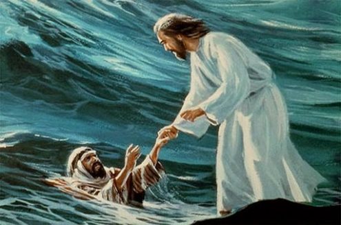 Khi Phêrô kêu cứu, Thầy Giêsu đã giữ ông khỏi bị nước nuốt chửng.