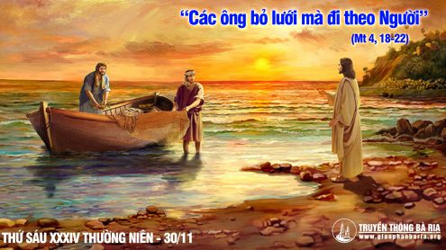 Khi ấy, nhân lúc Chúa Giêsu đi dọc theo bờ biển Galilêa, Người thấy hai anh em là Simon, cũng gọi là Phêrô, và Anrê, em ông, cả hai đang thả lưới dưới biển, vì hai ông là ngư phủ. Người bảo hai ông rằng: “Các ngươi hãy theo Ta, Ta sẽ làm cho các ngươi trở thành những ngư phủ lưới người ta”. Lập tức hai ông bỏ lưới đó mà theo Người. Đi xa hơn một đỗi, Người lại thấy hai anh em khác là Giacôbê con ông Giêbêđê, và Gioan em ông đang vá lưới trong thuyền với cha là Giêbêđê. Người cũng gọi hai ông. Lập tức hai ông bỏ lưới và cha mình mà đi theo Người.