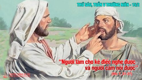 Khi ấy, Chúa Giêsu từ địa hạt Tyrô qua Siđon đến gần biển Galilêa giữa miền thập tỉnh, Người ta đem đến cho Người một kẻ câm điếc và xin Người đặt tay trên kẻ ấy. Người đem anh ta ra khỏi đám đông, đặt ngón tay vào tai anh ta và bôi nước miếng vào lưỡi anh. Đoạn ngước mắt lên trời, Người thở dài và bảo: “Ephpheta!”, nghĩa là “Hãy mở ra!”, tức thì tai anh ta mở ra và lưỡi anh ta được tháo gỡ, và anh nói được sõi sàng. Chúa Giêsu liền cấm họ: đừng nói điều đó với ai cả. Nhưng Người càng cấm, thì họ càng loan truyền mạnh hơn. Họ đầy lòng thán phục mà rằng: “Người làm mọi sự tốt đẹp, Người làm cho kẻ điếc nghe được và người câm nói được”.