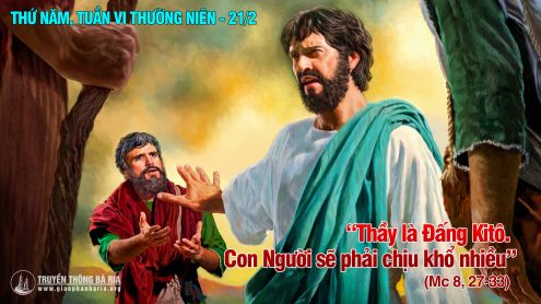 Khi ấy, Chúa Giêsu cùng các môn đệ đi về phía những làng nhỏ miền Cêsarê thuộc quyền Philipphê. Dọc đường, Người hỏi các ông rằng: “Người ta bảo Thầy là ai?” Các ông đáp lại rằng: “Thưa là Gioan tẩy giả. Một số bảo là Êlia, một số khác lại cho là một trong các vị tiên tri”. Bấy giờ Người hỏi: “Còn các con, các con bảo Thầy là ai?” Phêrô lên tiếng đáp: “Thầy là Đấng Kitô”. Người liền nghiêm cấm các ông không được nói về Người với ai cả. Và Người bắt đầu dạy các ông biết Con Người sẽ phải chịu đau khổ nhiều, sẽ bị các kỳ lão, các trưởng tế, các luật sĩ chối bỏ và giết đi, rồi sau ba ngày sẽ sống lại. Người công khai tuyên bố các điều đó. Bấy giờ Phêrô kéo Người lui ra mà can trách Người. Nhưng Người quay lại nhìn các môn đệ và quở trách Phêrô rằng: “Satan, hãy lui đi, vì ngươi không biết việc Thiên Chúa, mà chỉ biết việc loài người”.