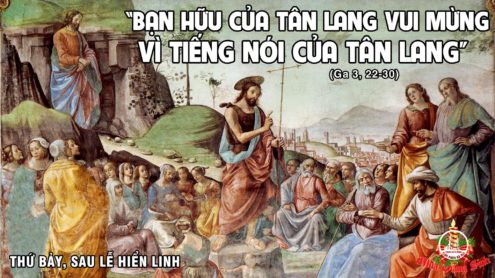 Gioan trả lời rằng: “Không ai có thể nhận được gì, nếu không do trời ban cho. Chính các anh đã làm chứng là tôi đã nói: tôi không phải là Đấng Kitô, nhưng tôi được sai đi trước Người. Ai có vợ, người ấy là chồng, còn bạn của chồng đứng đó mà nghe và vui mừng hớn hở vì nghe tiếng nói của người chồng. Đó chính là niềm vui trọn vẹn của tôi. Người phải lớn lên, còn tôi phải bé đi”.