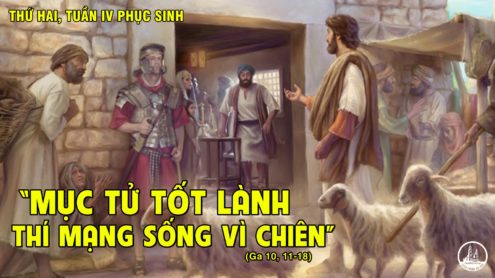 Khi ấy, Đức Giêsu nói: “Tôi chính là mục tử nhân lành. Mục tử nhân lành hy sinh mạng sống mình cho chiên. Người làm thuê, vì không phải là mục tử, và vì chiên không thuộc về anh, nên khi thấy sói đến, anh bỏ chiên mà chạy. Sói vồ lấy chiên và làm cho chiên tán loạn, vì anh ta là kẻ làm thuê và không thiết gì đến chiên. Tôi chính là mục tử nhân lành. Tôi biết các chiên của tôi và chiên của tôi biết tôi, như Chúa Cha biết tôi và tôi biết Chúa Cha, và tôi hy sinh mạng sống mình cho chiên. Tôi còn có những chiên khác không thuộc ràn này. Tôi cũng phải đưa chúng về. Chúng sẽ nghe tiếng tôi. Và sẽ chỉ có một đoàn chiên và một mục tử. Sở dĩ Chúa Cha yêu mến tôi, là vì tôi hy sinh mạng sống mình để rồi lấy lại. Mạng sống của tôi, không ai lấy được, nhưng chính tôi tự ý hy sinh mạng sống mình. Tôi có quyền hy sinh và có quyền lấy lại mạng sống ấy. Ðó là mệnh lệnh của Cha tôi mà tôi đã nhận được.”