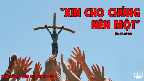 Khi ấy, Đức Giêsu ngước mắt lên trời và cầu nguyện rằng: “Con không chỉ cầu nguyện cho những người này, nhưng còn cho những ai nhờ lời họ mà tin vào con, để tất cả nên một, như Cha ở trong con và con ở trong Cha để họ cũng ở trong chúng ta. Như vậy, thế gian sẽ tin rằng Cha đã sai con. Phần con, con đã ban cho họ vinh quang mà Cha đã ban cho con, để họ được nên một như chúng ta là một: Con ở trong họ và Cha ở trong con, để họ được hoàn toàn nên một; như vậy, thế gian sẽ nhận biết là chính Cha đã sai con và đã yêu thương họ như đã yêu thương con. Lạy Cha, con muốn rằng con ở đâu, thì những người Cha đã ban cho con cũng ở đó với con, để họ chiêm ngưỡng vinh quang của con, vinh quang mà Cha đã ban cho con, vì Cha đã yêu thương con trước khi thế gian được tạo thành. Lạy Cha là Đấng công chính, thế gian đã không biết Cha, nhưng con, con đã biết Cha, và những người này đã biết là chính Cha đã sai con. Con đã cho họ biết danh Cha, và sẽ còn cho họ biết nữa, để tình Cha đã yêu thương con, ở trong họ, và con cũng ở trong họ nữa”.