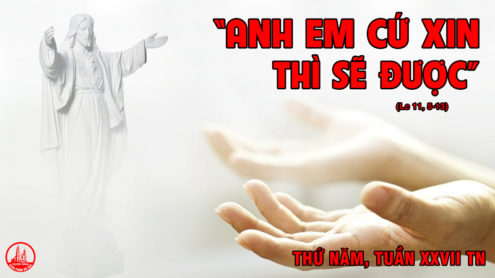 Qua đoạn Tin Mừng hôm nay, Đức Giêsu đã cho chúng ta biết phải làm gì khi cầu xin. Hãy cứ xin với tấm lòng thành và phải kiên nhẫn sẽ được Chúa nhận lời bởi Người nói: “cứ xin thì sẽ được”.