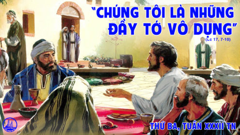 Khi ấy, Đức Giêsu nói với các môn đệ rằng: “Ai trong anh em có người đầy tớ đi cày hay đi chăn chiên, mà khi nó ở ngoài đồng về, lại bảo nó: “Mau vào ăn cơm đi”, chứ không bảo: “Hãy dọn cơm cho ta ăn, thắt lưng hầu bàn cho ta ăn uống xong đã, rồi anh hãy ăn uống sau!”? Chẳng lẽ ông chủ lại biết ơn đầy tớ vì nó đã làm theo lệnh truyền sao? Ðối với anh em cũng vậy: khi đã làm tất cả những gì theo lệnh phải làm, thì hãy nói: chúng tôi là những đầy tớ vô dụng, chúng tôi đã chỉ làm việc bổn phận đấy thôi.”