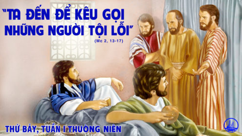 Đức Giêsu lại đi ra bờ biển hồ. Toàn thể dân chúng đến với Người, và Người dạy dỗ họ. Đi ngang qua trạm thu thuế, Người thấy ông Lêvi là con ông Anphê, đang ngồi ở đó. Người bảo ông: “Anh hãy theo tôi!” Ông đứng dậy đi theo Người. Người đến dùng bữa tại nhà ông. Nhiều người thu thuế và người tội lỗi cùng ăn với Đức Giêsu và các môn đệ: con số họ đông và họ đi theo Người. Những kinh sư thuộc nhóm Pharisêu thấy Người ăn uống với những kẻ tội lỗi và người thu thuế, thì nói với các môn đệ Người: “Sao! Ông ấy ăn uống với bọn thu thuế và quân tội lỗi!” Nghe thấy thế, Đức Giêsu nói với họ: “Người khoẻ mạnh không cần thầy thuốc, người đau ốm mới cần. Tôi không đến để kêu gọi người công chính, mà để kêu gọi người tội lỗi.”
