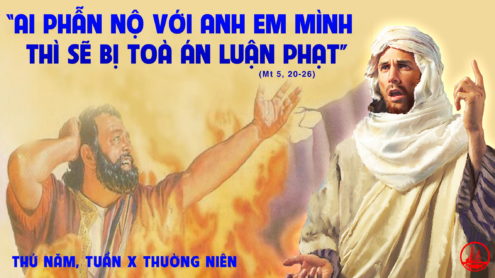 Khi ấy, Đức Giêsu nói với các môn đệ rằng: “Thầy bảo cho anh em biết, nếu anh em không ăn ở công chính hơn các kinh sư và người Pharisêu, thì sẽ chẳng được vào Nước Trời. Anh em đã nghe Luật dạy người xưa rằng: Chớ giết người. Ai giết người, thì đáng bị đưa ra tòa. Còn Thầy, Thầy bảo cho anh em biết: ai giận anh em mình, thì phải bị đưa ra tòa. Ai mắng anh em mình là đồ ngốc, thì phải bị đưa ra trước thượng hội đồng. Còn ai chửi anh em mình là quân phản đạo, thì phải bị lửa hỏa ngục thiêu đốt. Vậy, nếu khi anh sắp dâng lễ vật trước bàn thờ, mà sực nhớ có người anh em đang có chuyện bất bình với anh, thì hãy để của lễ lại đó trước bàn thờ, đi làm hòa với người anh em ấy đã, rồi trở lại dâng lễ vật của mình. Anh hãy mau mau dàn xếp với đối phương, khi còn đang trên đường đi với người ấy tới cửa công, kẻo người ấy nộp anh cho quan tòa, quan tòa lại giao anh cho thuộc hạ, và anh sẽ bị tống ngục. Thầy bảo thật cho anh biết: anh sẽ không ra khỏi đó, trước khi trả hết đồng xu cuối cùng.”