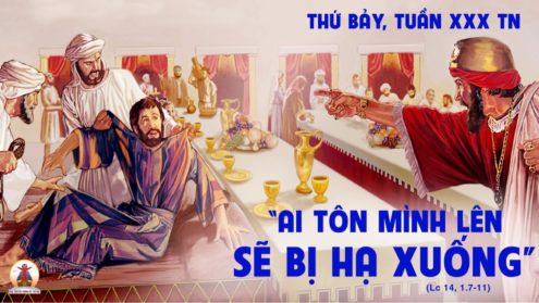 Hôm nay, Đức Giêsu dạy cho chúng ta một bài giáo lý rất căn bản trong cuộc sống hằng ngày, đó là đức tính khiêm nhường. “Vì phàm ai tôn mình lên sẽ bị hạ xuống; còn ai hạ mình xuống sẽ được tôn lên” (c.11). Ngườikhông những chỉ dạy cho các môn đệ mà còn dạy cho tất cả mọi người đang nghe nhân dịp đến dự bữa tiệc tại nhà viên thủ lãnh các người Biệt phái, và cho cả chúng ta ngày hôm nay.