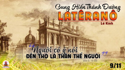 Hôm nay chúng ta mừng lễ cung hiến thánh đường Latêranô. Ðây là vương cung thánh đường cổ kính nhất của Hội Thánh, là nhà thờ chính toà của Ðức Thánh Cha, giám mục Rôma, là Mẹ của mọi nhà thờ trên thế giới. Cung hiến thánh đường là dâng cho Chúa một ngôi nhà để dành riêng cho việc phụng tự. Khi được cung hiến để trở thành nhà của Thiên Chúa, thánh đường cũng trở nên nhà của các tín hữu. Nơi Thiên Chúa hiện diện và thi ân cũng là nơi con người họp nhau để tôn thờ, cảm tạ. Dù nguy nga hay nhỏ bé, cổ kính hay hiện đại, mọi nhà thờ đều là nơi Thiên Chúa hẹn gặp con người.