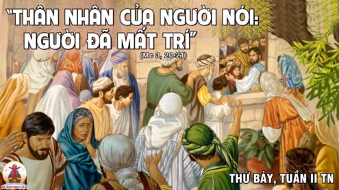Bài Tin Mừng hôm nay thật là ngắn, chỉ gồm có hai câu. Nhưng câu chuyện kể lại có thế làm chúng ta bối rối. Đức Giêsu đã gặp sự chống đối từ phía các kinh sư và người Pharisêu. Bây giờ Ngài lại gặp sự hiểu lầm từ phía những thân nhân, trong đó có thể có thân mẫu của Ngài (x. Mc 3, 31). Khi Đức Giê su và các môn đệ trờ về nhà ở Caphácnaum, đám đông lại kéo đến. Nhu cầu thật lớn lao và thúc bách khiến cả nhóm không thể nào có giờ ăn. Thân nhân của Ngài nghe tin ấy thì hốt hoảng. Có lẽ họ đã đi từ quê làng Nadarét đến để gặp Đức Giêsu. Họ nghĩ Ngài bị mất trí và họ muốn lôi Ngài về lại quê nhà. Họ sẵn sàng dùng sức mạnh để ép Đức Giêsu phải đi. Kể cũng lạ nếu chỉ dựa vào chuyện Đức Giêsu không ăn để vội vã kết luận là Ngài mất trí. Các thân nhân chẳng để ý đến chuyện đám đông chạy đến với Ngài để được trừ quỷ, được chữa bệnh và để được nghe giảng. Làm sao một người mất trí có thể làm được những việc như thế ? Xem ra họ không hiểu mấy về con người và sứ mạng của Đức Giêsu.