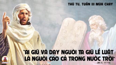 Đức Giêsu mời chúng ta nghiêm túc giữ Luật Môsê đã được Ngài kiện toàn. Luật ấy là lời giáo huấn của Ngài mà các môn đệ đã nghe. Con người thời nay thích tự do nên dị ứng với luật lệ. Nhưng giữ luật không phải là chuyện của nô lệ hay trẻ con. Khi tránh được thói nệ luật, cứng nhắc bám vào mặt chữ, ta có thể giữ luật như cách biểu lộ hồn nhiên tình yêu với Chúa và tha nhân. Trung tín với những đòi hỏi nhỏ bé của các điều răn chỉ vì yêu, và “dạy người ta mọi điều Thầy đã truyền cho anh em” (Mt 28, 20), đó là con đường dẫn đến hạnh phúc mai sau cho người môn đệ.