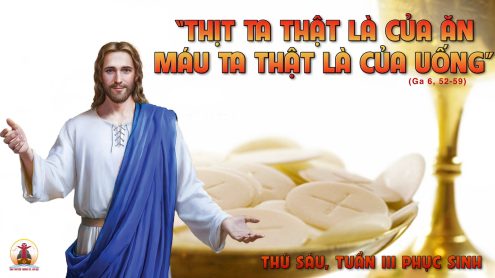 “Thịt Ta thật là của ăn, Máu Ta thật là của uống”.