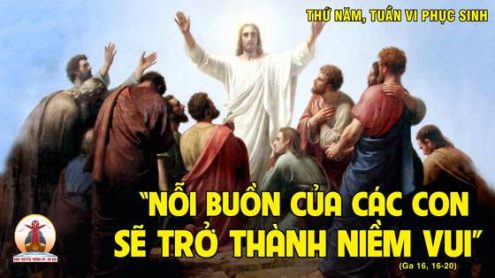 Chúa Giêsu nhận thấy họ muốn hỏi Người, nên Người bảo họ: “Các con hỏi nhau vì Thầy đã nói: Một ít nữa các con sẽ không thấy Thầy, rồi lại một ít nữa các con sẽ thấy Thầy. Thật, Thầy bảo thật với các con: các con sẽ than van khóc lóc, còn thế gian sẽ vui mừng. Các con sẽ buồn sầu; nhưng nỗi buồn của các con sẽ trở thành niềm vui”.