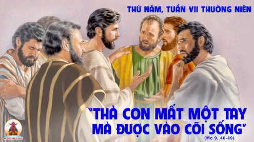 “Nếu tay con nên dịp tội cho con, hãy chặt tay đó đi: thà con mất một tay mà được vào cõi sống, còn hơn là có đủ hai tay mà phải vào hoả ngục, trong lửa không hề tắt. Và nếu chân con làm dịp tội cho con, hãy chặt chân đó đi: thà con mất một chân mà được vào cõi sống, còn hơn là có đủ hai chân mà phải ném xuống hoả ngục. Và nếu mắt con làm dịp tội cho con, hãy móc mắt đó đi, thà con còn một mắt mà vào nước Thiên Chúa, còn hơn là có đủ hai mắt mà phải ném xuống hoả ngục, nơi mà dòi bọ rúc rỉa nó không hề chết và lửa không hề tắt. Vì mọi người sẽ bị ướp bằng lửa.