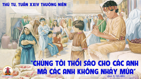 Khi ấy, Chúa Giêsu phán rằng: “Ta sẽ phải nói những người của thế hệ này giống ai đây? Họ giống ai? Họ giống như những đứa trẻ ngồi ngoài đường phố gọi và nói với nhau rằng: “Chúng tôi đã thổi sáo cho các anh, mà các anh không nhảy múa. Chúng tôi đã hát những điệu bi ai, mà các anh không khóc”.