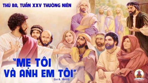 Khi ấy, mẹ và anh em Chúa Giêsu đến tìm Người, nhưng vì đám đông, nên không thể đến gần Người được. Người ta báo tin cho Người rằng: “Có mẹ và anh em Thầy đứng ở ngoài muốn gặp Thầy”. Người trả lời với họ rằng: “Mẹ và anh em Ta là những người nghe lời Thiên Chúa và đem ra thực hành”.