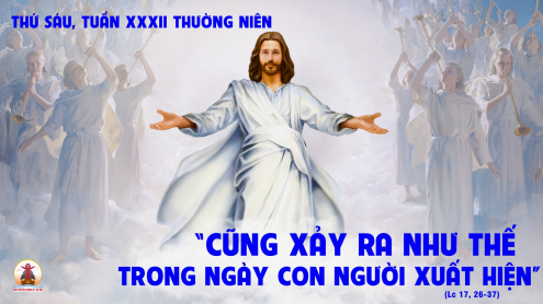 Khi ấy, Chúa Giêsu phán cùng các môn đệ rằng: “Như sự kiện đã xảy ra thời Noe thế nào, thì trong ngày Con Người cũng xảy đến như vậy. Thiên hạ cứ ăn uống, cưới vợ gả chồng, mãi cho tới ngày Noe vào tầu, rồi nước lụt đến tiêu diệt mọi người. Lại cũng như đã xảy ra thời ông Lót: người ta ăn uống, mua bán, trồng tỉa, xây cất, nhưng ngày ông Lót ra khỏi thành Sôđôma, thì trời liền mưa lửa và sinh diêm, tiêu diệt mọi người. Cũng sẽ xảy như thế trong ngày Con Người xuất hiện.nTrong ngày đó, ai ở trên mái nhà có đồ vật trong nhà, thì chớ xuống lấy đi; và ai ở ngoài đồng cũng đừng trở về. Các con hãy nhớ trường hợp vợ ông Lót. Ai lo cứu mạng sống mình thì sẽ mất, còn ai đành mất sự sống mình thì giữ được nó”.
