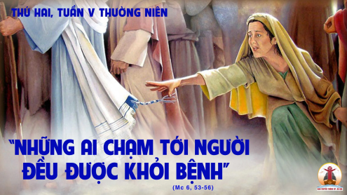Khi qua biển rồi, Ðức Giêsu và các môn đệ ghé vào đất liền tại Ghennêxarét và lên bờ. Thầy trò vừa ra khỏi thuyền, thì lập tức người ta nhận ra Ðức Giêsu. Họ rảo khắp vùng ấy và nghe tin Người ở đâu, thì người ta cáng bệnh nhân đến đó. Người đi tới đâu, vào làng mạc, thành thị hay thôn xóm nào, người ta cũng đặt kẻ ốm đau ở chỗ công cộng, và xin Người cho họ ít là được chạm đến tua áo choàng của Người; và bất cứ ai chạm đến, thì đều được khỏi. Đó là lời Chúa.