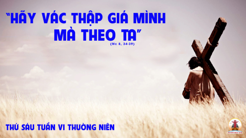 Khi ấy, Chúa Giêsu tập họp dân chúng cùng các môn đệ lại, và phán: “Ai muốn theo Ta, hãy từ bỏ mình, vác thập giá mình mà theo Ta. Quả thật, ai muốn cứu mạng sống mình, thì sẽ mất. Còn ai chịu mất mạng sống mình vì Ta và vì Phúc Âm, thì sẽ cứu được mạng sống mình. Vì chưng được lời lãi cả thế gian mà mất mạng sống mình, thì nào được ích gì? Và người ta lấy gì mà đánh đổi mạng sống mình? Ai hổ thẹn vì Ta và vì lời Ta trong thế hệ ngoại tình và tội lỗi này, thì Con Người cũng sẽ hổ thẹn từ khước nó, khi Người đến trong vinh quang của Cha Người cùng với các thần thánh”. Và Ngài nói với họ: “Quả thật, Ta bảo các ngươi: trong số những kẻ có mặt đây, có người sẽ không phải nếm cái chết, trước khi thấy Nước Thiên Chúa đến trong quyền năng”. Ðó là lời Chúa.