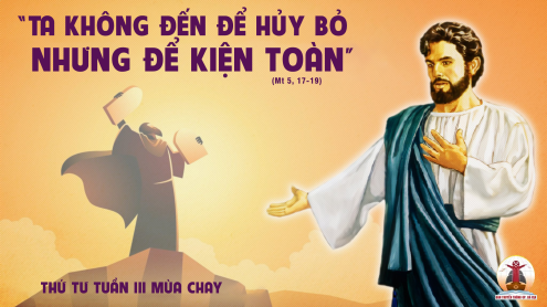 Đoạn Tin Mừng hôm nay, Chúa Giêsu khẳng định về sự liên kết chặt chẽ giữa Lề Luật và Ngài. Người tuyên bố rõ ràng: Chúa đến không phải để bãi bỏ Lề Luật hay các tiên tri, mà là để hoàn tất: “Chính tôi không đến để bãi bỏ nhưng là để làm cho hoàn tất” (Mt 5,17). Lời này là một lời mời gọi chúng ta xét lại cách chúng ta sống theo lề luật và lời dạy của Chúa trong đời sống hằng ngày.