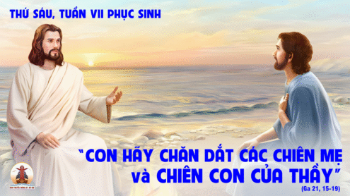 Hôm nay Chúa Giêsu Phục sinh cũng hỏi từng Kitô hữu: Con có mến Thầy không? Và Ngài chờ một câu trả lời trước khi trao sứ mạng, vì ai trong chúng ta cũng có sứ mạng chăm sóc một nhóm người nào đó. Xin ơn yêu Giêsu bằng tình yêu thiết thân riêng tư. Xin ơn theo Ngài vì nghe thấy lời mời gọi vang lên mỗi ngày: Hãy theo Thầy. Và xin ơn dám sống hết mình cho những người được Chúa trao phó.