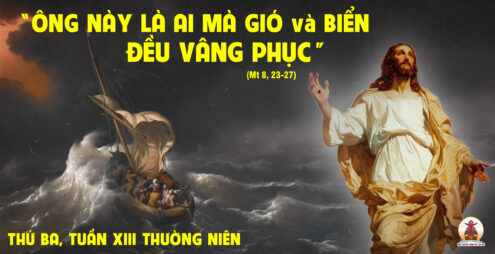 Bài Tin mừng hôm nay cũng diễn tả một biến cố đầy sợ hãi: các môn đệ lênh đênh giữa biển khơi, còn Chúa Giêsu thì đang ngủ. Trong cơn hoảng loạn, các ông kêu lên: “Thưa Ngài, xin cứu chúng con, chúng con chết mất!” (Mt 8,25). Hình ảnh này phản chiếu nỗi sợ hãi của con người khi đối diện với các giông bão của cuộc đời – từ bệnh tật, tai nạn đến những rạn nứt trong các mối quan hệ. Với sức lực giới hạn, con người khó lòng chống chọi nếu không có điểm tựa đức tin. Nhưng như lời Chúa Giêsu đã phán: “Can đảm lên, Thầy đây, đừng sợ!” (Ga 6,20), chúng ta được mời gọi vững tin rằng Chúa đã chiến thắng thế gian và luôn ở cùng chúng ta.