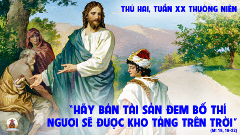 Khi ấy, có một người đến thưa cùng Chúa Giêsu rằng: “Lạy Thầy nhân lành, tôi phải làm việc lành gì để được sống đời đời?” Người bảo kẻ ấy rằng: “Sao ngươi hỏi Ta về việc lành? Chỉ có một Ðấng nhân lành là Thiên Chúa. Nếu ngươi muốn vào nơi hằng sống, ngươi hãy tuân giữ các giới răn”. Người ấy hỏi rằng: “Những giới răn nào?” Chúa Giêsu đáp: “Ngươi chớ giết người, chớ ngoại tình, chớ trộm cắp, chớ làm chứng dối. Hãy thảo kính cha mẹ, và yêu thương kẻ khác như chính mình”. Người thanh niên thưa lại rằng: “Tất cả những điều đó tôi đã giữ từ khi còn niên thiếu, vậy tôi còn thiếu sót gì nữa chăng? Chúa Giêsu bảo anh: “Nếu ngươi muốn nên trọn lành, hãy về bán hết của cải ngươi có và bố thí cho người nghèo khó, thì ngươi sẽ được kho tàng trên trời, rồi đến mà theo Ta”. Khi người thanh niên nghe lời đó thì buồn rầu bỏ đi, vì anh có nhiều sản nghiệp. Ðó là lời Chúa.
