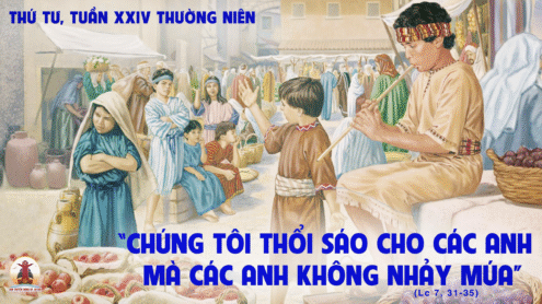Khi ấy, Chúa Giêsu phán rằng: “Ta sẽ phải nói những người của thế hệ này giống ai đây? Họ giống ai? Họ giống như những đứa trẻ ngồi ngoài đường phố gọi và nói với nhau rằng: “Chúng tôi đã thổi sáo cho các anh, mà các anh không nhảy múa. Chúng tôi đã hát những điệu bi ai, mà các anh không khóc”.