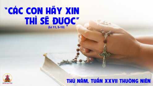 “Và Thầy bảo các con: Các con hãy xin thì sẽ được, hãy tìm thì sẽ gặp, hãy gõ thì sẽ mở cho. Vì hễ ai xin thì sẽ được, ai tìm thì sẽ gặp, ai gõ thì sẽ mở cho. Người cha nào trong các con có đứa con xin bánh mà lại cho nó hòn đá ư? Hay nó xin cá lại cho nó con rắn thay vì cá sao? Hay nó xin quả trứng, lại cho nó con bọ cạp ư? Vậy nếu các con là những kẻ gian ác, còn biết cho con cái mình những của tốt, phương chi Cha các con trên trời sẽ ban Thánh Thần cho những kẻ xin Người”. Ðó là lời Chúa.