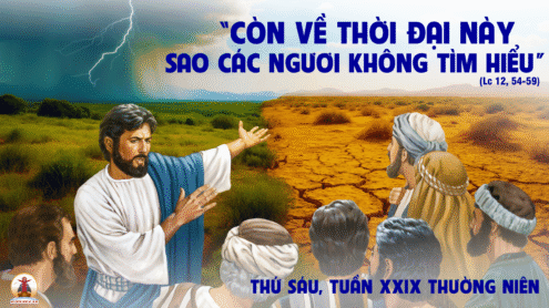 Trang Tin mừng hôm nay thuật lại việc Chúa Giêsu khen người Do Thái thời đó rất tài tình khi dự đoán thời tiết: “Khi các ngươi xem thấy đám mây nổi lên ở phía tây, các ngươi nói rằng: Trời sắp mưa: và sự thật xảy ra như thế” (Lc 12,54). Ngày nay người Kitô hữu còn hiểu biết nhiều về khoa học, kỹ thuật, có nhiều kiến thức sâu rộng, giúp con người phòng tránh thiên tai và thích nghi với mọi hoàn cảnh tốt hơn nhằm để bảo vệ sinh mạng của mình và cộng đồng. Tuy ngày xưa Chúa Giêsu khen dân Do Thái rất giỏi nhận biết về vũ trụ nhưng đồng thời Người cũng lại khiển trách họ: “Hỡi những kẻ giả hình, các ngươi biết tìm hiểu diện mạo của trời đất, còn về thời đại này, sao các ngươi không tìm hiểu?” (Lc 12,56). Họ thể hiện tài trí nhận biết về thế giới muôn vật mà không quan tâm suy nghĩ thấu đáo về những điều Chúa làm và Lời Chúa giảng dạy, họ không nhận ra thời kỳ cứu độ đã đến với họ.