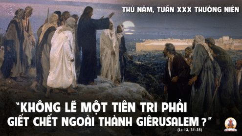Hôm nay, ngày mai, ngày mốt vẫn cứ như thế. “Tôi phải tiếp tục đi” (c. 33). Đức Giêsu biết rất rõ mình đang đi đâu và đến đâu. Ngài sẽ tiếp tục lên đường, không phải vì sợ quyền lực của Hêrôđê, nhưng vì Ngài chấp nhận ở dưới quyền của Thiên Chúa. Ngài hướng tới Giêrusalem, nơi nhiều ngôn sứ đã chịu bách hại. Đức Giêsu ý thức mình là một ngôn sứ của Thiên Chúa. Số phận của Ngài cũng chẳng hơn gì bao ngôn sứ khác. Cái chết đang chờ đợi Ngài ở Giêrusalem. Giêrusalem là nơi đáng sợ, nhưng cũng là nơi đáng thương. Đức Giêsu đã âu yếm gọi hai lần: “Giêrusalem, Giêrusalem!” Ngài tự ví mình như gà mẹ tập họp gà con dưới cánh. “Đã bao lần Ta muốn… nhưng các ngươi lại không muốn” (c. 34). Một tình yêu bị từ chối nên thốt lên những lời thở than. Vị ngôn sứ Giêsu phải dừng bước khi con người khép lòng mình lại. Án phạt đến từ thái độ từ khước của con người, giống như đàn gà con không để cho gà mẹ chở che dẫn dắt. “Nhà các ngươi sẽ bị bỏ mặc cho các ngươi” (c. 35). Thiên Chúa bỏ đền thờ, bỏ thành thánh Giêrusalem mà đi, để mặc cho quân thù vây hãm và tiêu hủy. Nhưng rồi sẽ đến ngày Đức Giêsu trở lại trong vinh quang. Lúc ấy mọi người sẽ tung hô: Chúc tụng Đấng nhân danh Chúa mà đến.