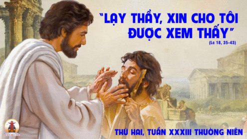 Bài Tin mừng hôm nay thuật lại việc Chúa Giêsu chữa lành cho người mù thành Giêricô. Anh ta ngồi bên vệ đường, nghe tin Chúa Giêsu đi qua liền kêu lớn tiếng: “Lạy Đức Giêsu, Con vua Đavít, xin dủ lòng thương tôi!” (Lc 18,38). Dù bị nhiều người quát nạt, anh vẫn không nản chí, càng kêu lớn hơn. Và Chúa Giêsu đã dừng lại, hỏi anh: “Anh muốn tôi làm gì cho anh?”. Anh thưa: “Lạy Thầy, xin cho con được thấy”. Ngay lập tức, anh được sáng mắt và đi theo Người, vừa đi vừa tôn vinh Thiên Chúa.