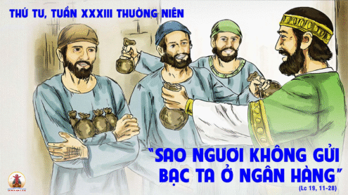 Đó chính là ý nghĩa của dụ ngôn trong bài Tin Mừng hôm nay. Một nhà quý tộc kia đi xa để lãnh nhận vương quyền. Trước khi đi ông gọi mười người đầy tớ lại, và trao cho họ mỗi người một số tiền không lớn lắm, là một đồng mina. Ông ra lệnh: “Hãy lo làm ăn sinh lợi cho tới khi tôi đến” (c. 13). Khi nhà quý tộc trở về trong tư cách là vua, ông truyền gọi các đầy tớ lại để họ báo cáo về công việc làm ăn. Hai người đầy tớ đầu tiên đã sinh lợi không ít. Một người được lời thêm mười đồng, người kia được thêm năm đồng. Cả hai được vua ban thưởng rất trọng hậu, cho cai trị các thành phố. Còn người thứ ba trả lại cho nhà vua đồng mina anh đã nhận. “Thưa Ngài, đồng mina của Ngài đây, tôi đã giữ kỹ nó trong khăn.” Tất cả tội của người đầy tớ này nằm ở thái độ giữ kỹ.