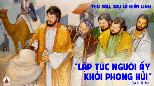 Xảy ra khi Chúa Giêsu đang ở trong một thành kia, thì có một người mình đầy phong hủi, thấy Chúa Giêsu, liền sấp mặt xuống đất, van xin Ngài rằng: “Lạy Thầy, nếu Thầy muốn, Thầy có thể cho tôi được sạch”. Người giơ tay chạm đến người ấy và nói: “Ta muốn, hãy nên trơn sạch”. Lập tức, người ấy khỏi phong hủi. Người ra lệnh cho người ấy không được nói với ai, nhưng: “Hãy đi trình diện với tư tế, và hãy dâng lễ vật như luật Môsê đã dạy, để làm chứng cho người ta biết ngươi được sạch”. Nhưng tiếng đồn về Người cứ lan rộng, và dân chúng đông đảo kéo nhau đến để nghe Người và được chữa lành bệnh tật. Còn Người, thì lánh vào nơi hoang vắng và cầu nguyện. Ðó là lời Chúa.