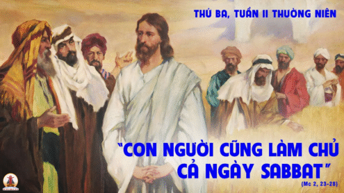 Vào một ngày Sabbat, Chúa Giêsu đi qua đồng lúa, môn đệ Người vừa đi vừa bứt lúa. Tức thì những người biệt phái thưa Người rằng: “Kìa Thầy xem. Tại sao ngày Sabbat người ta làm điều không được phép như vậy?” Người trả lời rằng: “Các ông chưa bao giờ đọc thấy điều mà Ðavít đã làm khi ngài và các cận vệ phải túng cực và bị đói ư? Người đã vào nhà Chúa thời thượng tế Abiata thế nào, và đã ăn bánh dâng trên bàn thờ mà chỉ mình thượng tế được ăn, và đã cho cả các cận vệ cùng ăn thế nào?” Và Người bảo họ rằng: “Ngày Sabbat làm ra vì loài người, chứ không phải loài người vì ngày Sabbat; cho nên Con Người cũng làm chủ cả ngày Sabbat”. Ðó là lời Chúa.