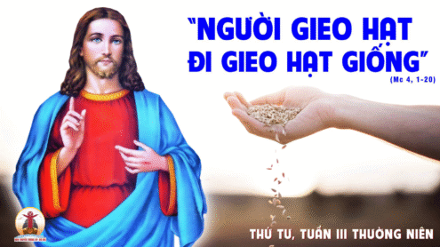 Khi ấy, Chúa Giêsu bắt đầu giảng dạy ở bờ biển và có đám đông dân chúng tụ lại gần Người, nên Người xuống ngồi trong một chiếc thuyền trên mặt biển, tất cả đám đông thì ở trên đất theo dọc bờ biển. Người dùng dụ ngôn mà dạy họ nhiều điều, và khi giảng, Người nói với họ rằng: “Các ngươi hãy nghe! Nầy người gieo hạt đi gieo hạt giống. Khi gieo, một phần hạt rơi xuống vệ đường và chim trời đến ăn hết. Phần khác rơi trên đất sỏi, nơi không có nhiều đất. Hạt giống đã mọc lên ngay, vì lớp đất không sâu. Nhưng khi mặt trời mọc lên, hạt giống bị nắng đốt và vì không rễ, nên bị chết khô. Một phần khác rơi vào bụi gai và gai mọc lên làm hạt giống chết mà không sinh hoa trái được. Phần hạt khác rơi vào đất tốt, mọc lên, nẩy nở và sinh quả, hạt thì sinh được ba mươi, hạt được sáu mươi, hạt được một trăm”. Và Người phán rằng: “Ai có tai nghe thì hãy nghe”. Khi Người còn lại một mình, thì mười hai ông là những kẻ luôn ở với Người, hỏi Người về ý nghĩa dụ ngôn, Người liền bảo các ông: “Các con được ơn biết mầu nhiệm về nước Thiên Chúa, còn những người khác ở ngoài thì mọi sự được giảng dạy bằng dụ ngôn, vì chúng nhìn mà không thấy, nghe mà không hiểu, kẻo chúng trở lại mà được tha tội”. Người nói với các ông: “Các con không hiểu dụ ngôn đó sao? Vậy thì hiểu sao được tất cả những dụ ngôn khác? Người gieo hạt là gieo lời Chúa. Vệ đường mà lời Chúa được gieo vào, là những kẻ vừa nghe xong, thì Satan đến và cất lấy lời Chúa gieo trong tâm hồn họ. Và cũng thế, những hạt giống rơi trên đất sỏi, là những kẻ khi nghe lời Chúa thì đón nhận vui vẻ, nhưng chúng không đâm rễ bên trong và là những người hay thay đổi: sau đó gặp phải cơ cực hay bắt bớ vì lời Chúa, thì họ sa ngã liền. Lại có những hạt giống rơi trong bụi gai. Ðây là những kẻ nghe lời Chúa, nhưng những lo lắng trần tục, bóp nghẹt lời Chúa, khiến không thể sinh hoa trái được. Còn những hạt giống gieo trong đất tốt: đó là những người nghe lời Chúa, biết giữ lấy và làm sinh lợi, hạt ba mươi, hạt sáu mươi và hạt một trăm”. Ðó là lời Chúa.