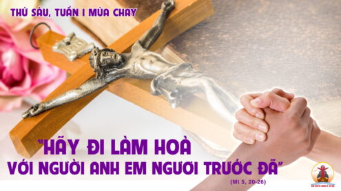 Mùa Chay là thời gian dành cho việc làm hòa với người anh em. Đây là công việc vừa quan trọng, vừa cấp bách. Quan trọng đến nỗi đòi ta để của lễ lại trước bàn thờ và đi làm hòa với người anh em đó, rồi mới trở lại dâng của lễ. Tương quan với Thiên Chúa cần được diễn ra trong bầu khí hòa thuận. Chúa chỉ nhận lễ vật khi trái tim ta bình yên. Điều đáng lưu ý là chúng ta phải đi làm hòa với các anh em đang có điều bất bình với ta, phải đi bước trước làm hòa dù ta chẳng phải là người gây chuyện. Nhưng cũng phải làm hòa với cả thù địch của mình (c. 25). Trên đường bị đưa đến cửa công, cần mau mau dàn xếp cho ổn thỏa. Cần trả ngay món nợ chưa thanh toán, kẻo bị kết án và tống ngục. Làm sao thời gian Mùa Chay vừa là thời gian ta làm hòa với Chúa, vừa là thời gian ta làm hòa với một người đang sống gần bên. Đó là thời gian người con cả thôi đứng ngoài cổng, nhưng vào nhà để chung vui với cha và ôm lấy người em.